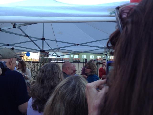 Gabby looked tired. She looked sad although she smiled and subjected herself to hundreds of people taking pictures. She was born to run. U.S. Rep. Ron Barber, who won a special election to take her place in the House, noted that Gabby’s always had a secret passion to be a DJ., which she did at today’s “Get Out the Vote” bash/concert at Tucson’s historic, funky Hotel Congress. “Born to Run” by Bruce Springsteen was the first song she played.