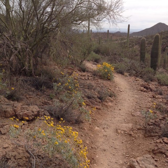This morning we had a delicious breakfast at the B-Line. We hiked in the Tucson Mountains where the sunny yellow brittlebush will soon cover the desert.