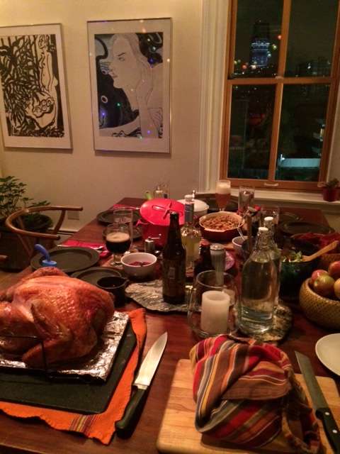 I’m “grated full” — as one of my U.S. history students years ago wrote — of gladness on the day after Thanksgiving (boo black Friday). Dan joined me in Jersey City for my favorite holiday, despite the cold, icy rain and too many people on the streets. He also surprised me by venturing into the city. WE met my oldest friend, Charlotte, at the Modern at MoMa for lunch. The snazziness and high prices were worth it, except the $16 mimosa (it was no different than a $3 one at Rincon Market in Tucson).