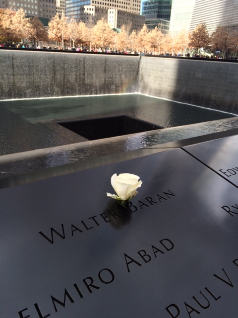 Another surprise — after the seven-minute ferry ride from Jersey City across the Hudson — we took in the World Trade Center park with its haunting memorial.