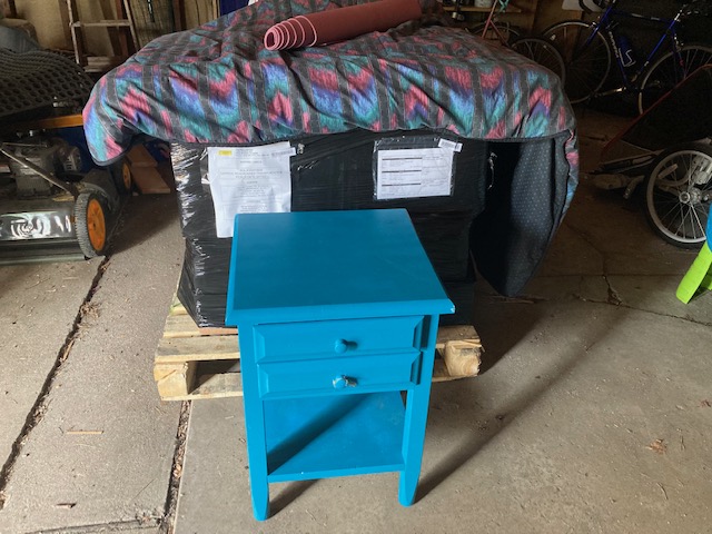 My slight OCDishness tweaks my activity strings. Finding a place to live precipitated a look-around at Loft Antiques, run by two helpful women. I found a cute little turquoise side table for my agreeable gray bedroom. It’s waiting by most of my worldly goods in Ethan and Steph’s garage.