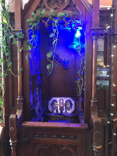 Today I walked back to Birchbark Books to buy a copy of Braiding Sweetgrass. How lucky am I to have a terrific little bookstore only a half-mile from my apartment. It was a sunshiny day with the temperature in the high 30s. And I had to take another look at that priestly confession box, which serves an important role in The Sentence.